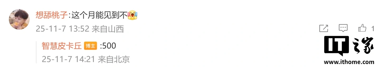 后续有用户在评论区询问:“尺寸多少”,博主回复道:“6.6/6.8”;另一名用户则询问道:“这个月能见到不”,博主则回复道:“500”。
